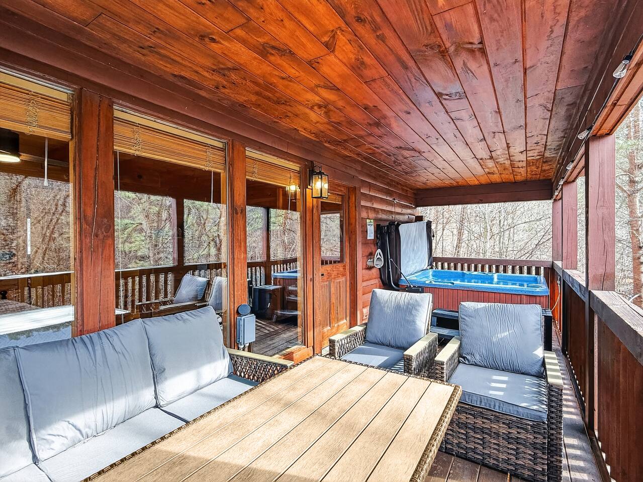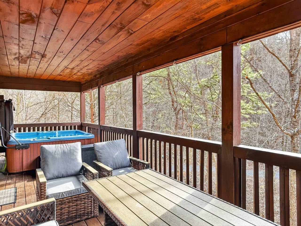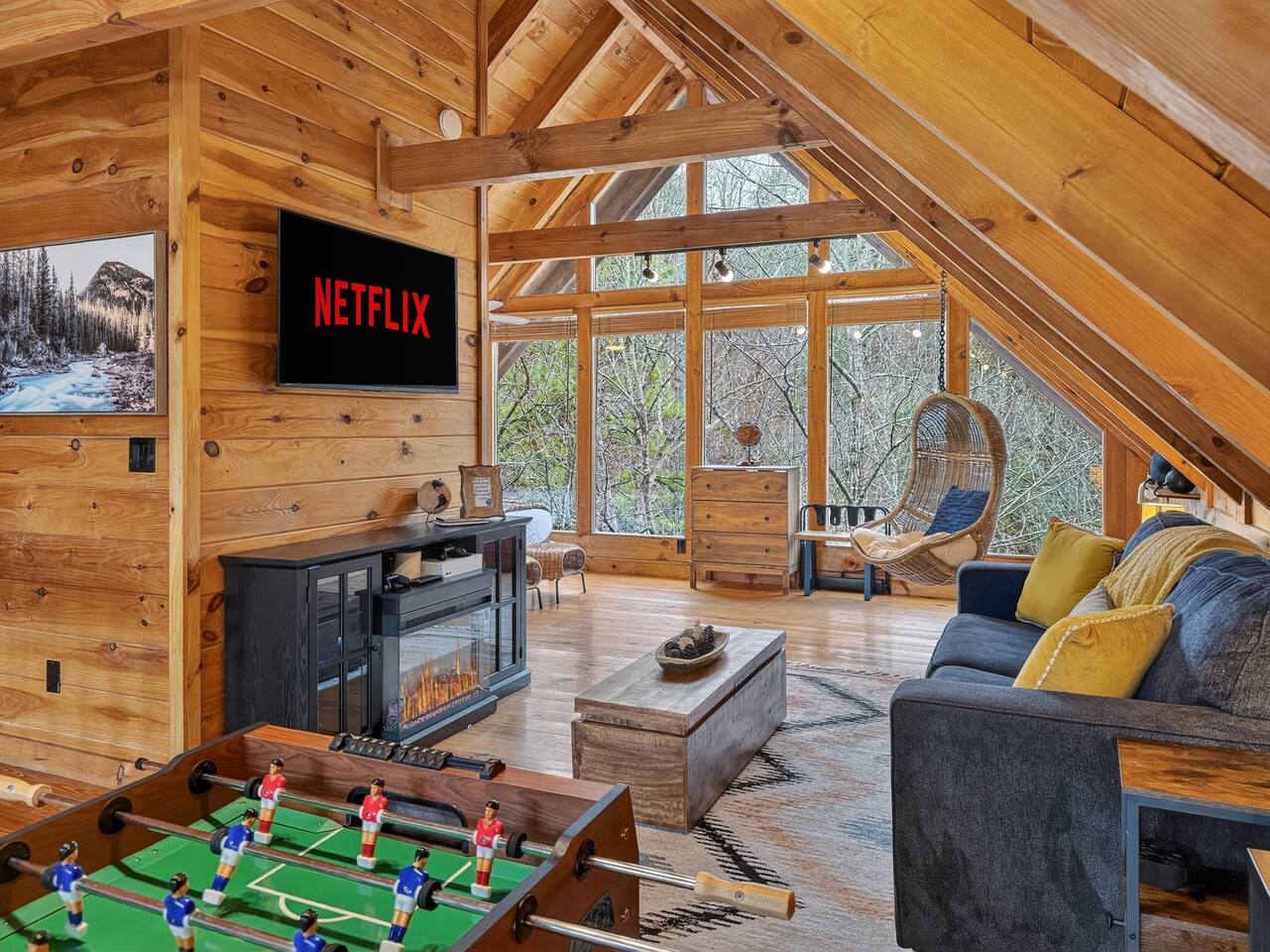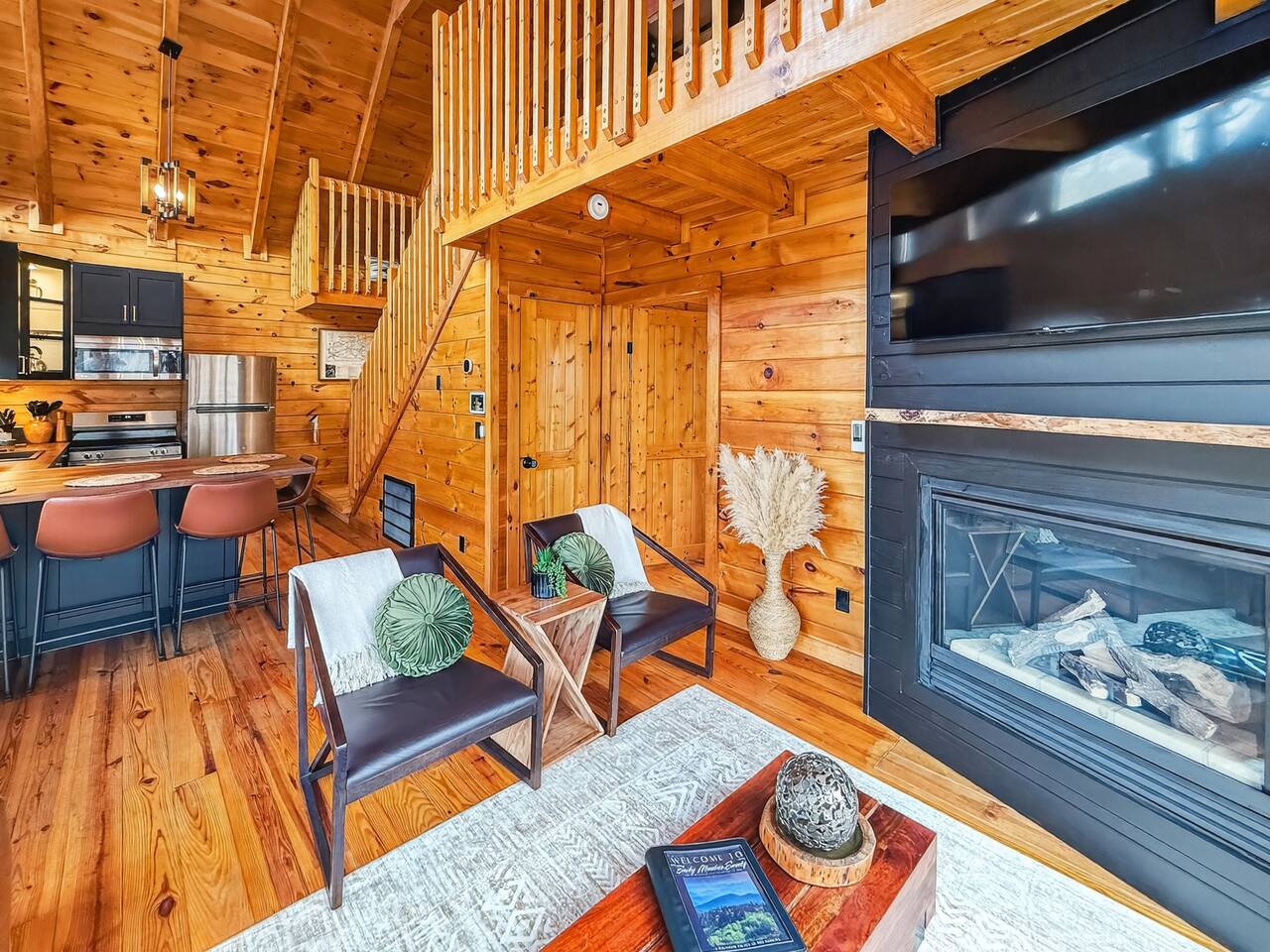 Escape to Smoky Mountain Serenity, a luxurious mountain getaway in the Smokies. Just 13 miles from all the attractions in Pigeon Forge, Gatlinburg and Sevierville! Enjoy our High-end finishes and escape to the mountains for your Serene Vacation. Ideal for relaxation, our Chalet cabin features smart Tv's, hot tub, cozy living room, a fully equipped Kitchen and 2 full bathrooms. Perfect for Families, couples and remote workers seeing a tranquil retreat.