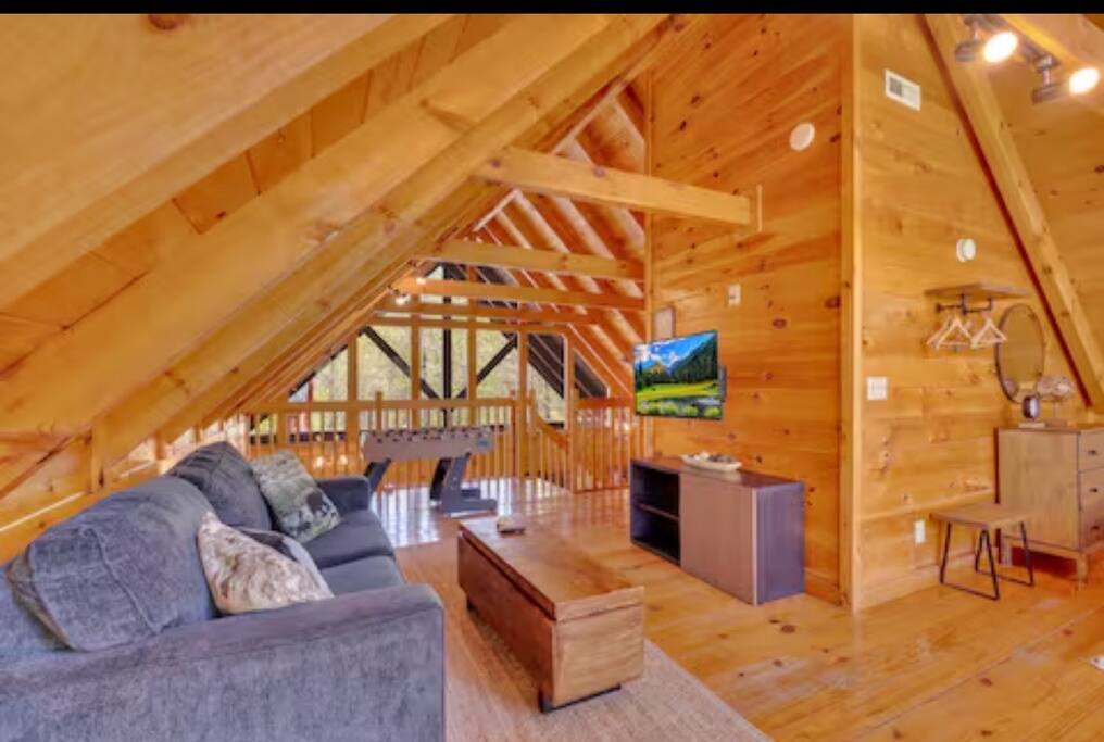 Escape to Smoky Mountain Serenity, a luxurious mountain getaway in the Smokies. Just 12 miles from all the attractions in Pigeon Forge, Gatlinburg and Sevierville! Enjoy our High-end finishes and escape to the mountains for your Serene Vacation. Ideal for relaxation, the Chalet features smart Tv's, hot tub, cozy living room, a fully equipped Kitchen and 2 full bathrooms. Perfect for Families, couples and remote workers seeing a tranquil retreat.